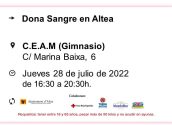 Dijous 7 de febrer, de 16:30 a 20:30h en el CEAM, dóna sang i salva tres vides Feb 4, 2019 Facebook Twitter Pinterest LinkedIn Artículos relacionados:Amb una sola donació de sang pots salvar tres vides!…Altea acull el proper dissabte 17 de juny la 22a…Dona sang i salva 3 vides. Dijous 19 de gener en el…Si eres part de la xarxa més social o vols ser-ho,…