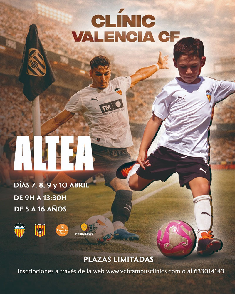 Al mes d’abril, els dies 7, 8, 9 i 10, tindrà lloc a Altea la quinta edició del campus de futbol del València, Clínic València CF; com així ho han donat a conéixer l’edil d’Esports, Sara Soler, el gerent de Nitidia Sport, Alex Gayà i la Presidenta de la UD Altea, Sofia Llobell.